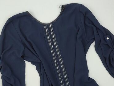Granatowa bluzka damska H&M - Rozmiar: EUR 44 / UK 14 / US 14 (na metce także 175/100A) - Fason: luźna koszulowa, bez kołnierzyka, dekolt w serek z krótką listwą guzikową (3 guziki z przodu) - Ręk...