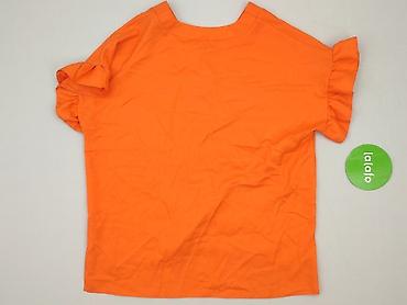 Bluzka damska z krótkim rękawem, kolor pomarańczowy. - Fason: luźniejszy, z delikatnym ściągaczem na dole, który ładnie układa bluzkę na biodrach. - Dekolt: okrągły, z dekoracyjną wstawką z koronk...