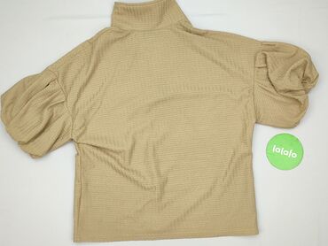 Bluzka damska SHEIN, rozmiar S (EU 36 / US 4). - Kolor: jasny beż/ecru, delikatnie prążkowana dzianina. - Fason: dopasowany korpus z półgolfem; długie, bufiaste rękawy z przezroczystego tiulu/chif...
