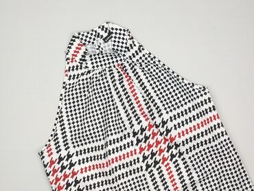 Biała bluzka bez rękawów SHEIN z ozdobną czarną wstążką/troczkiem wiązanym pod szyją. - Marka: SHEIN - Krój: lekko luźny, dolny brzeg zaokrąglony (dłuższy tył) - Dekolt: z kołnierzową stójką i wią...