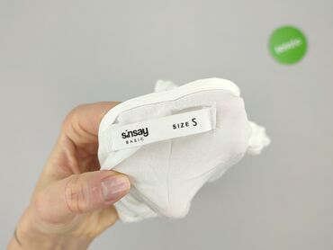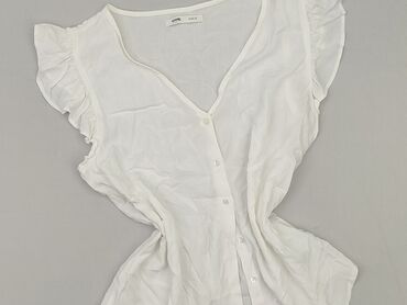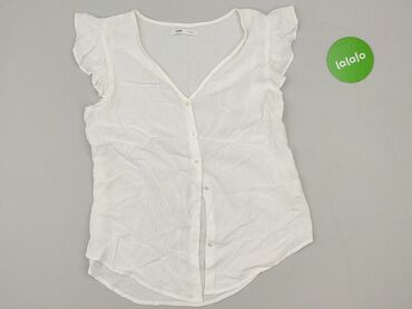 === PART 1: TEXTUAL DESCRIPTION ===Biała bluzka damska marki Sinsay z krótkim rękawem i wiązaniem na dole. Charakteryzuje się dekoltem w kształcie litery V i zapięciem na guziki. Bluzka może być un...