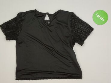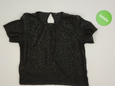 Dzianinowa bluzka Sinsay, rozmiar S. - Kolor: melanż czarno‑szary - Fason: luźny, z okrągłym dekoltem i rękawem 3/4 z podwinięciem - Ozdoby: aplikacje z przezroczystych kamieni w kształcie listków...