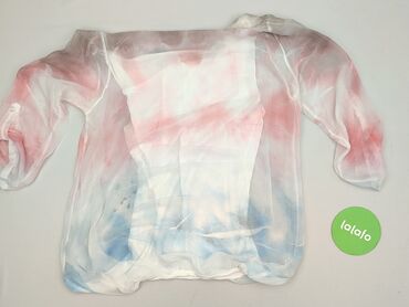 Bluzka damska z lekkiego, półprzezroczystego materiału, rozmiar S. - Kolorystyka: miętowa baza z dużym, akwarelowym nadrukiem kwiatów i motyli w odcieniach różu, fioletu i granatu. - Krój: luźny, ...