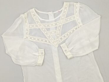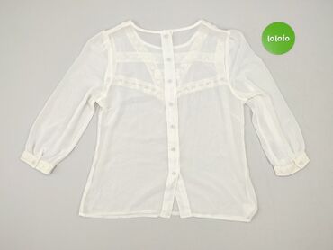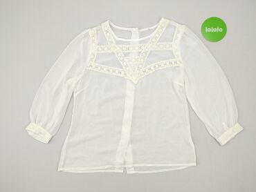 Biała bluzka damska z lekkiej, przewiewnej tkaniny - Rozmiar: S (metka) - Materiał: 100% bawełna - Fason: luźniejszy, tunikowy - Rękaw: 3/4 zakończony mankietem - Dekolt: w kształcie litery V z lis...