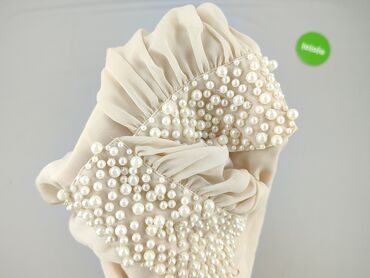 Bluzka damska w kolorze jasnego beżu/ecru. - Rozmiar: 36 (z metki) - Materiał: 100% poliester (cienka, lekko prześwitująca tkanina) - Krój: luźny, lekko marszczony - Dekolt: szeroki, z gumką i ozd...