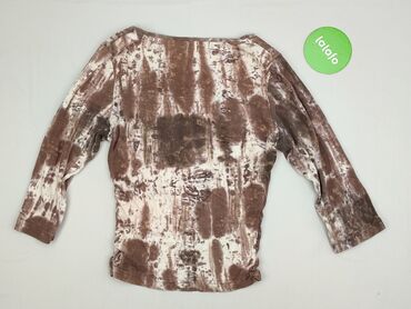 Bluzka damska w paski, z miękkiej dzianiny. - Krój: prosty, swobodny, z okrągłym dekoltem - Rękawy: 3/4 z kontrastowymi mankietami - Wzór: poziome paski w odcieniach brązu, ecru i bieli; panelowe ...