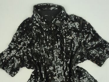 Bluzka TOPSHOP - Model: cienka, półprzezroczysta bluzka z krótkim rękawem - Kolor: czarny z drobną, metaliczną nitką (delikatny połysk) - Fason: dopasowany, elastyczny; falbaniaste wykończenia prz...