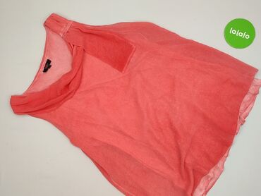 Bluzka damska bez rękawów - Kolor: koralowy/czerwony z delikatnym, nieregularnym wzorem. - Krój: luźny, swobodnie opływający sylwetkę; zaokrąglony dekolt. - Rozmiar z metki: M. - Materiał: cienka,...