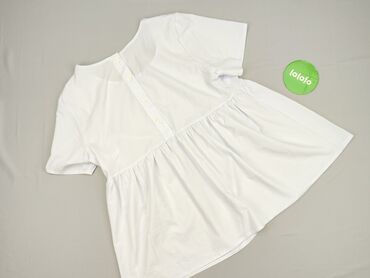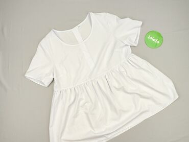 Biała bluzka damska z krótkim rękawem typu dzwonek. - Materiał: cienka, miękka dzianina (przyjemna w dotyku, lekko elastyczna). - Krój: luźny, z dekoltem w łódkę/okrągłym. - Rękawy rozszerzane, ...