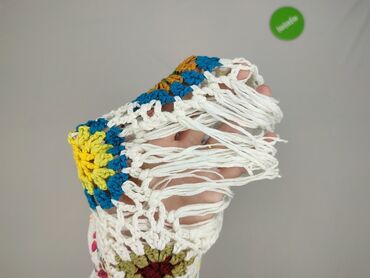 Tuniko–ponczo R&F dla kobiety - Model: lekka, biała tunika w stylu boho, krojona jak ponczo - Dekolt i mankiety zdobione szydełkowymi kwadratami granny (biel, turkus, granat, niebieski) - Dół wyko...