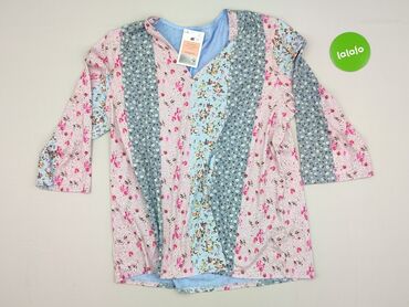Bluzka damska Frk., rozmiar 38 - Krój: luźny, lekko trapezowy, z marszczeniami przy dekolcie; zapięcie na guziki z przodu - Rękawy: 3/4, bufiaste - Dekolt: okrągły - Wzór: drobne kwiaty w odcienia...