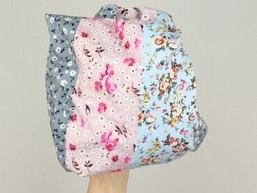 - Wzór: pasy patchworkowe w drobne kwiaty i groszki; kolory pastelowe – róż, błękit, szarość