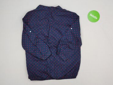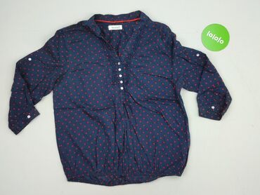 Bluzka damska Yessica (C&A) - Fason: luźny, koszulowy, z dekoltem w serek i krótką listwą guzikową (3 guziki) - Wzór: granatowa w drobne białe kropki - Rękawy: długie, z możliwością podwiązania/wi...Stan: