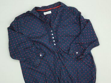 Bluzka damska Yessica (C&A) - Fason: luźny, koszulowy, z dekoltem w serek i krótką listwą guzikową (3 guziki) - Wzór: granatowa w drobne białe kropki - Rękawy: długie, z możliwością podwiązania/wi...