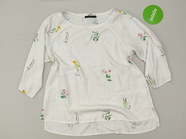 Bluzka damska WOMEN, rozmiar S - Kolor: biały z subtelnym, roślinnym wzorem w odcieniach bieli/szarości (efekt ażurowy – półprzezroczysta tkanina wierzchnia). - Krój: luźny, nietoperzowe rękawy do...