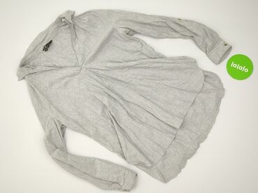 Szara tunika/bluzka damska HOUSE – rozmiar S - Fason: luźna, wydłużona tunika z długim rękawem - Kolor: jasny melanż szary - Kontrastowe wykończenia: czarne lamówki przy dekolcie, mankietach oraz ...
