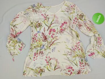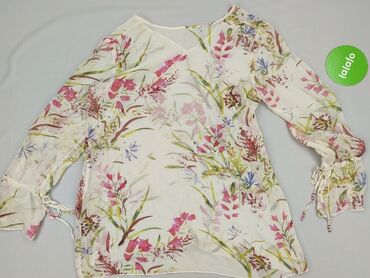 Lekka, kwiatowa koszula/tunika damska - Rozmiar: XL (metryczka widoczna na zdjęciu) - Krój: taliowana tunika z falbaną u dołu - Rękaw: krótki, lekko bufiany - Zapięcie: guziki na całej długości pr...