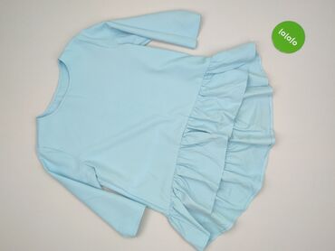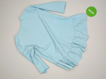 Niebieska tunika/bluzka damska z falbaną - Krój: luźny, asymetryczny dół z szeroką, marszczoną falbaną - Rękawy: 3/4, lekko bufiaste z delikatnymi marszczeniami - Dekolt: okrągły - Materiał: cienk...Stan: