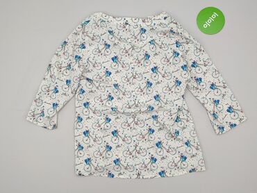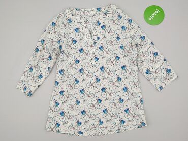 Bluzka damska WOMEN, rozmiar 36. - Kolor: ecru/śmietanowy z granatowym, roślinnym nadrukiem. - Krój: lekko przedłużany tył, swobodna linia, delikatnie marszczona. - Dekolt: V z ozdobnym, kontrastow...