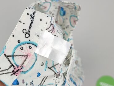 - Kolor/pattern: białe tło, wielokolorowy nadruk retro rowerów z koszykiem kwiatów; drobne serduszka i napisy “Summertime”/“Hello summertime” w odcieniach niebieskiego, różu i turkusu