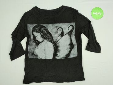 Czarna tunika damska z nadrukiem - Marka: Nozem Moia - Rozmiar: S - Fason: luźna tunika/bluzka typu long, lekko rozszerzana ku dołowi - Rękaw: 3/4 - Dekolt: okrągły - Kolor: czarny - Nadruk: duży ...