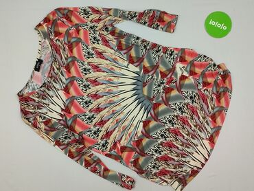 Bluzka damska Gosia – rozmiar L - Fason: prosta, luźniejsza, z długim rękawem - Dekolt: okrągły - Wzór: geometryczny, patchworkowy; kolory m.in. granat, róż, fuksja, biały, beż, błękit; elementy w...