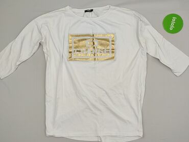 Biała bluzka damska z lekkiej, przewiewnej tkaniny (bawełna lub jej mieszanka). - Krój luźny, lekko rozkloszowany, z wiązaniem w pasie do regulacji. - Rękawy 3/4 zakończone szeroką koronką. -...
