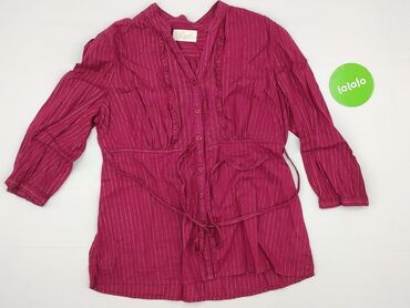 Damska koszula/tunika w kolorze intensywnego burgundu (malinowy/rubinowy). - Fason: lekko wydłużony, zapinany/wiązany z przodu, z kołnierzem bez stójki; długie rękawy. - Materiał: 100% wiskoza (i...