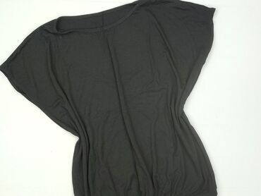 Czarna koszulka/bluzka damska z krótkim, kimonowym rękawem. - Fason: luźny, oversize z obniżoną linią ramion; dół wykończony szerszym ściągaczem. - Dekolt: okrągły. - Kolor: czarny. - Rozmiar z me...Stan: