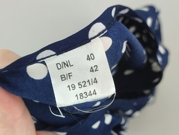 Bluzka damska w grochy - Rozmiar: L - Fason: klasyczny, lekko luźny - Rękaw: 3/4 - Dekolt: okrągły - Wzór: białe groszki na granatowym tle - Materiał: 70% wiskoza, 30% poliester – przewiewna, mięk...
