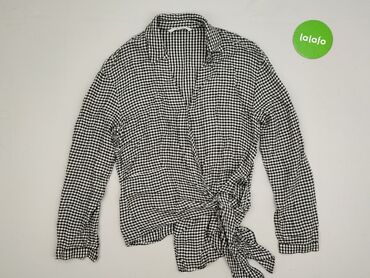 Długi rękawDamska bluzka w czarno-białą kratkę gingham, charakteryzująca się długimi rękawami z mankietami oraz kołnierzykiem. Bluzka posiada wiązanie z przodu, co pozwala na regulację dopasowania w talii. Jest to element garderoby, który łączy klasyczny wzór z nowoczesnym akcentem, idealny do różnorodnych stylizacji.
