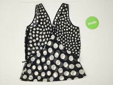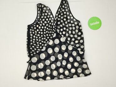 Bluzka damska House, rozmiar L - Kolor: biały w czarne groszki (polka dots) - Fason: zwiewny, bez rękawów - Dekolt: V z małym wycięciem i zapięciem na guzik z tyłu szyi - Detale: falbany przy rami...