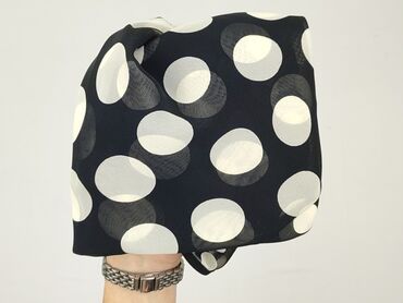 Bez rękawówPrzedmiotem ogłoszenia jest damska bluzka o luźnym kroju, idealna na wiele okazji. Bluzka charakteryzuje się wzorem w białe i szare kropki na czarnym tle, co nadaje jej klasyczny, ale jednocześnie dynamiczny wygląd. Wykonana z lekkiego, zwiewnego materiału, zapewnia komfort noszenia i swobodę ruchów. Dekolt w kształcie litery V, z czarnymi lamówkami, dodaje elegancji. Bluzka jest zapinana na guziki z boku, co jest praktycznym i estetycznym rozwiązaniem. Fason bluzki jest odpowiedni zarówno do codziennych stylizacji, jak i na bardziej formalne wyjścia. Bluzka jest odpowiednia dla kobiet noszących rozmiar L.
