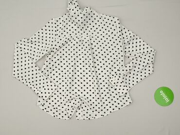 Czarna bluzka damska marki Forever 21 z krótkim rękawem, ozdobiona białymi stokrotkami z zielonymi środkami oraz drobnymi białymi kropkami. Bluzka zapinana jest na guziki, posiada kołnierzyk i krót...