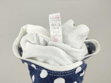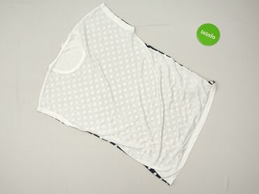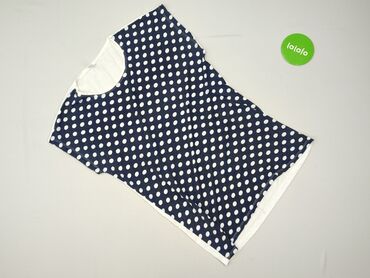 Bluzka damska w granatowym kolorze z białymi kropkami. Charakteryzuje się krótkimi, luźnymi rękawami i zapięciem na białe guziki z przodu. Krój bluzki jest luźny, co zapewnia komfort noszenia. Idea...