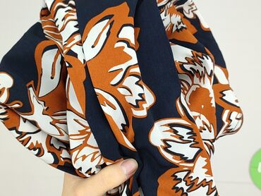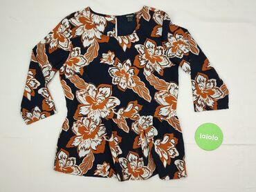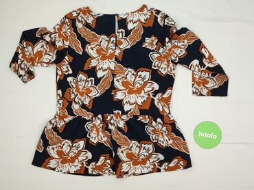 Bluzka damska Esmara - Fason: lekko rozkloszowany dół z marszczeniem w talii (peplum), rękaw 3/4, okrągły dekolt. - Wzór: duże kwiaty w odcieniach rudo‑brązowym i bieli na ciemnogranatowym tle. - ...