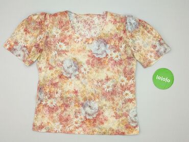 Bluzka damska z krótkim rękawem, ozdobiona wielokolorowym, kwiatowym wzorem. Charakteryzuje się luźnym krojem i elastycznym wykończeniem dekoltu oraz dołu, co zapewnia swobodne dopasowanie. Wykonan...