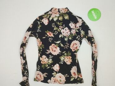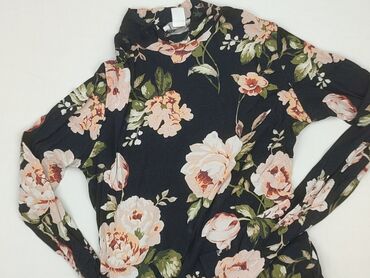 Bluzka damska AMISU - Fason: luźny, lekko wydłużony tył, dekolt w serek - Rękaw: długi z możliwością podpięcia (patki z guzikiem) - Wzór: intensywny, kwiatowy print na czarnym tle (odcienie pomara...