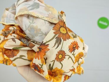 - Wzór: gęsty, retro-kwiatowy print w odcieniach żółci, pomarańczu i brązu na jasnym, kremowym tle.