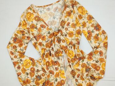 Bluzka damska z długim rękawem, w stylu retro/boho, z wyrazistym kwiatowym nadrukiem. - Kolory: odcienie brązu, pomarańczu, bieli, beżu oraz czerni - Krój: lekko taliowany, długość do bioder - Ręk...Stan: