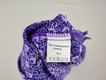 Krótki rękawFioletowa bluzka damska z krótkimi rękawami, ozdobiona drobnym, kwiatowym wzorem w odcieniach fioletu i bieli, z czarnymi akcentami. Bluzka ma dekolt w kształcie litery V, z lekko zakładanym przodem, co nadaje jej elegancki wygląd. Krótkie rękawy zapewniają komfort noszenia, a materiał wykonany w 100% z poliestru jest lekki i przewiewny, idealny na cieplejsze dni. Fason bluzki jest luźny, zapewniając swobodę ruchów i wygodę przez cały dzień. Ta bluzka jest idealna do codziennych stylizacji, zarówno do pracy, jak i na spotkania towarzyskie, doskonale komponując się z różnymi elementami garderoby, takimi jak spodnie czy spódnice.