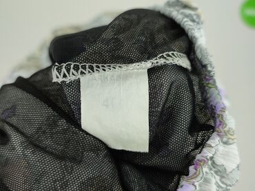 Bluzka damska F&F - Rozmiar: EU 46 (UK 18) - Krój: luźny, z krótkim rękawem - Dekolt: okrągły, wykończony czarną lamówką - Wzór: szary w czarne, drobne motywy paisley/kwiatowe - Detal: ozdobna lis...