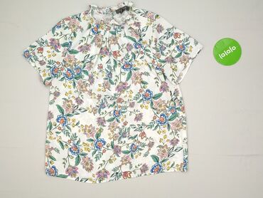 Bluzka damska Primark - Model: kopertowa bluzka z baskinką - Kolor: błękitny z białym, kwiatowym nadrukiem - Fason: dekolt w kształcie litery V, krótkie szerokie rękawy, lekko dopasowana talia i r...