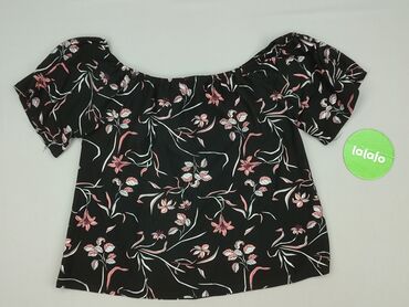 Bluzka damska MooDoo, rozmiar M. - Kolor: czarny w biały, drobny roślinny wzór. - Fason: lekko taliowany, z dłuższym, zaokrąglonym dołem. - Rękawy: długie, marszczone przy mankietach. - Dekolt: w ...