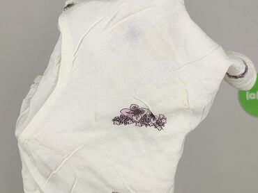 Biała damska bluzka z krótkim rękawem - Klasyczny, luźny krój - Dekolt w serek z krótką listwą i czterema guzikami - Delikatny, jednokolorowy haft roślinny po obu stronach dekoltu - Miękki, cienki...