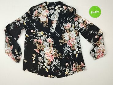 Czarna bluzka damska z długim rękawem, ozdobiona wielokolorowym wzorem kwiatowym. Posiada kołnierzyk i dekolt w kształcie litery V, co nadaje jej elegancki wygląd. Długie rękawy można wygodnie podw...