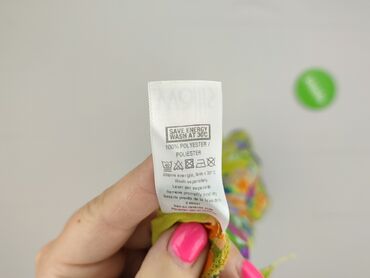 Bez rękawówBluzka damska Wallis w rozmiarze M, wykonana w 100% z poliestru. Charakteryzuje się wzorem w kwiaty, z przewagą odcieni żółtego, fioletowego, pomarańczowego i niebieskiego. Rękawy motylkowe oraz wiązanie z boku dodają jej lekkości i unikalnego charakteru, idealnie sprawdzając się w letnich stylizacjach. Materiał jest łatwy w pielęgnacji – zaleca się pranie w 30 stopniach.