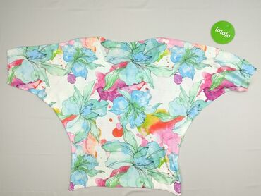 Bluzka damska w kwiaty, Made in Italy - Krój: luźny top z krótkimi, szerokimi rękawami typu kimono; zaznaczona talia dzięki wszytej gumce, lekko marszczona i elastyczna - Dekolt: w kształcie liter...Stan:
