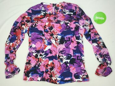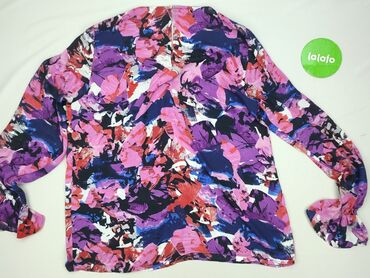Długi rękawDamska bluzka z długimi rękawami, ozdobiona wielokolorowym, abstrakcyjnym wzorem, który łączy odcienie fioletu, różu, czerwieni, błękitu i czerni na białym tle. Bluzka ma okrągły dekolt i jest zapinana na zamek z tyłu. Rękawy są luźne, zakończone elastycznymi mankietami, tworząc falbankowy efekt. Lekki materiał zapewnia komfort noszenia i swobodę ruchów. Idealna do stylizacji casualowych i bardziej eleganckich.