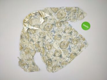 Bluzka damska w kwiaty - Krój koszulowy z klasycznym kołnierzykiem i zapięciem na guziki z przodu - Długie, bufiaste rękawy zakończone gumką przy mankietach - Wzór: wielobarwny, gęsty motyw kwiato...
